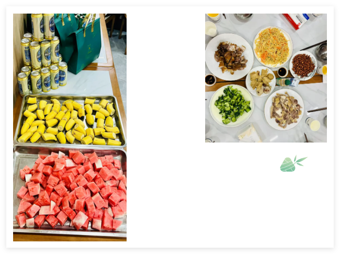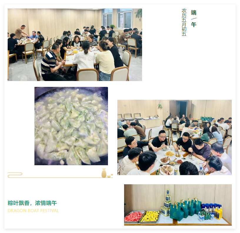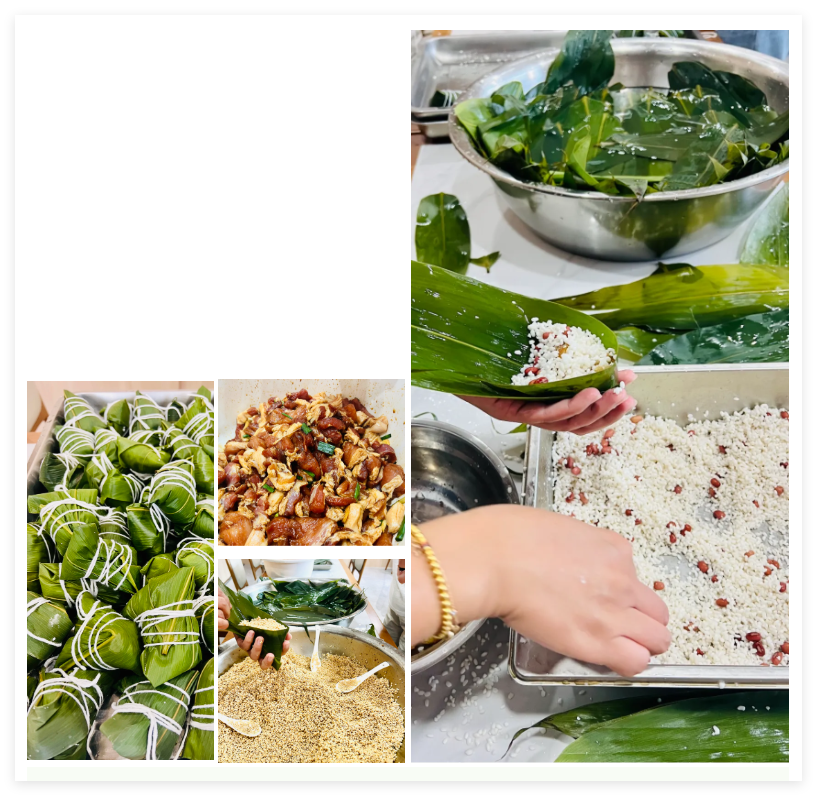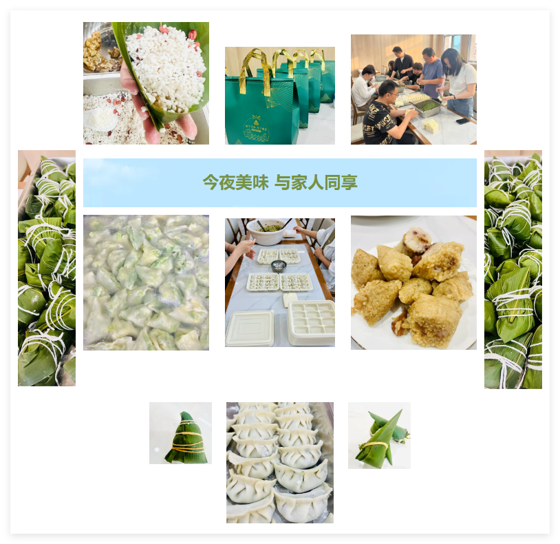 端午前夕,为让员工感受传统节日的烟火气,公司打破常规,将"包粽子+包饺子"升级为一场温馨的“手作晚宴”。5月30日下午,员工餐厅摇身变身为端午美食工坊,十余名员工历时半天完成了一场"从制作到品尝再到打包"的完整端午仪式。